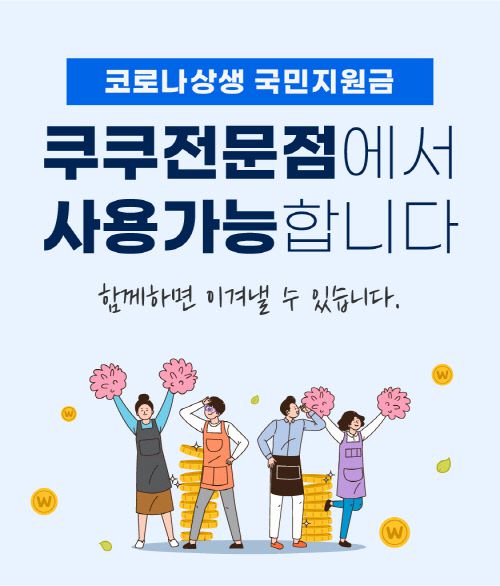 [스포츠서울 | 김자영기자] 쿠쿠는 코로나19 상생 국민지원금(제5차 긴급지원금) 사용이 가능한 할인 프로모션을 실시한다고 15일 밝혔다.