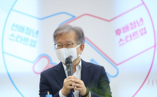 권칠승 중소벤처기업부 장관이 15일 오전 서울 구로구 글로벌창업사관학교에서 열린 ‘도전! K-스타트업 청년리그 간담회’에서 인사말을 하고 있다. (사진=연합뉴스) |