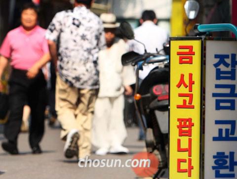 서울 시내의 한 금은방 앞에‘금을 사고 판다’는 팻말이 세워져 있다. /조선일보 DB |