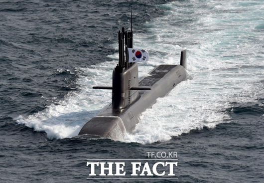 문재인 대통령이 15일 오후 국방과학연구소 종합시험장에서 진행된 SLBM 잠수함 발사시험을 참관했다. SLBM은 도산안창호함에 탑재되어 수중에서 발사됐으며, 계획된 사거리를 비행해 목표 지점에 정확히 명중했다. 도산안창호함 모습. /뉴시스 |