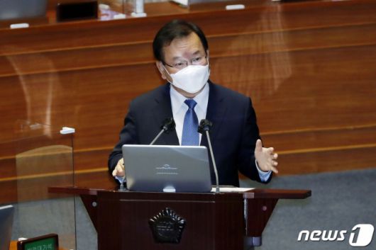 김부겸 국무총리가 15일 서울 여의도 국회 본회의장에서 열린 경제 분야 대정부질문에서 질의에 답변하고 있다. /사진=뉴스1 |