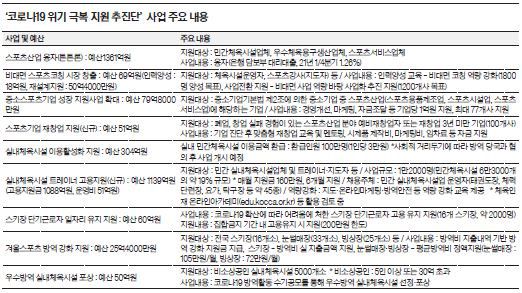 국민체육진흥공단은 지난 3월 이사장을 단장으로 하는 ‘코로나19 위기극복 지원 추진단’을 신설해 운영 중이다. 지난 1차 추경을 통해 1005억원, 이번 2차 추경으로 288억원의 추가 예산을 확보했다. 고용 여력이 감소한 실내 체육시설 고용 지원, 경영난을 겪고 있는 민간체육시설 이용 활성화 등을 포함해 코로나19로 침체된 체육계 지원에 속도를 낼 방침이다.