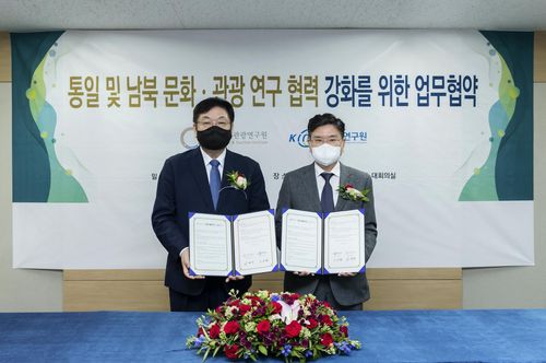 ▲ 통일연구원은 한국문화관광연구원과 통일·남북 문화관광 연구를 위한 업무협약을 체결했다고 16일 밝혔다. 양 기관은 이번 협약을 통해 정보·자료의 공동 활용, 연구협력·공동연구수행·연구네트워크 형성 등 인적 교류, 학술회의 공동개최·상호참여 등을 활성화할 계획이다. (서울=연합뉴스)