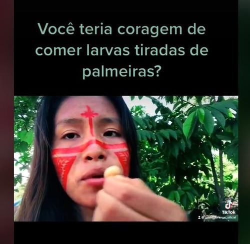 아마존 원주민 쿤하포랑가 타투요가 틱톡에 올린 영상에서 애벌레를 먹는 모습 [쿤하포랑가 틱톡 캡처] |