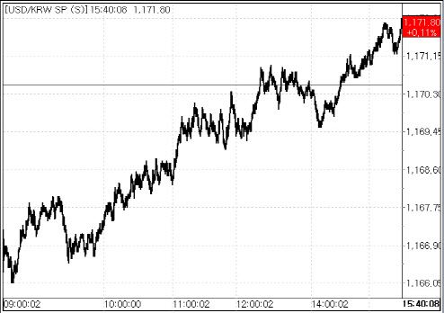 16일 서울외국환중개에 따르면 환율은 전 거래일 종가(1170.50원)보다 1.30원 오른 1171.80원에 마감했다. 이날 환율은 대비 전일 대비 4.0원 가량 하락한 1166.50원에 출발해 1160원대 중후반에서 등락하다 오후들어 1170원대로 올라서며 상승 반전했다.