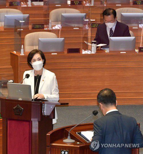 대정부질문 답변하는 유은혜 |