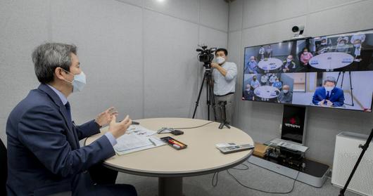 이인영 통일부 장관이 16일 서울 중구 대한적십자사 서울사무소에서 열린 화상 상봉장 시연행사에서 이산가족들과 면담하고 있다. 연합뉴스 |