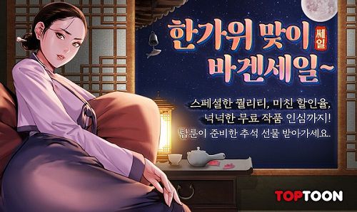 [스타데일리뉴스=황규준 기자] 유니크 웹툰 플랫폼 '탑툰'이 추석 명절을 맞아 웹툰 관련 다양한 프로모션을 진행한다고 17일 밝혔다.