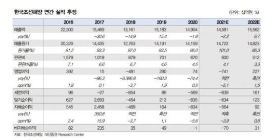 이동헌 대신증권 연구원은 "한국조선해양을 둘러싸고 자회사 상장에 따른 중간지주사의 할인 문제가 존재하지만, 업황이 회복되고 있고 시장의 친환경 혁신을 선도하고 있다"면서 "신사업이 가시화되는 시점에 주가가 재평가될 것"이라고 기대했다.
