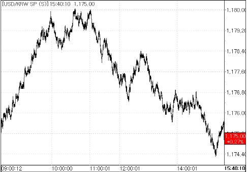 17일 서울외국환중개에 따르면 환율은 전 거래일 종가(1171.80원)보다 3.20원 오른 1175.00원에 마감했다. 이날 환율은 대비 전일 대비 3.70원 가량 오른 1175.50원에 출발해 1170원대 중후반에서 등락하다가 오후들어 상승폭을 확대했다.