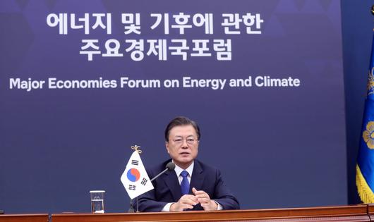 문 대통령은 17일 밤 9시30분부터 11시10분까지 청와대에서 '에너지 및 기후에 관한 주요 경제국 포럼(MEF)' 화상회의에 참석해 “정부는 기업들의 자발적인 노력이 새로운 도약의 기회가 될 수 있도록 정책적인 노력을 집중할 것”이라고 말했다.