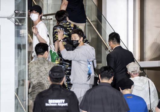 ‘미래세대와 문화를 위한 대통령 특별사절’로 임명된 방탄소년단(BTS)이 20일(현지시간) 열리는 유엔 ‘SDG 모멘트’ 행사에 참석하기 위해 18일 오후 인천국제공항 2터미널을 통해 미국 뉴욕으로 출국하고 있다. [연합] |