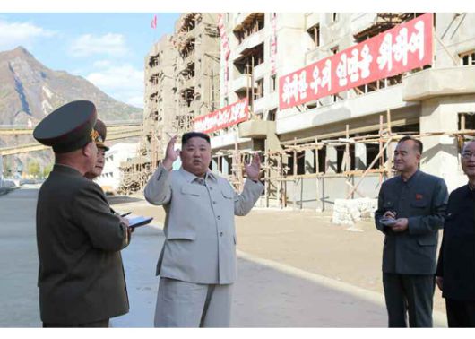 지난해 함남 검덕지구 태풍피해 복구현장을 시찰하는 김정은 위원장 |
