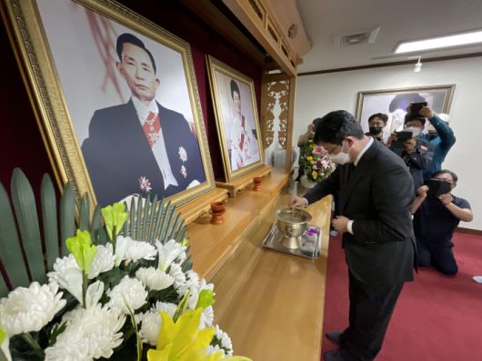 국민의힘 대권주자인 유승민 전 의원이 19일 오후 경북 구미시 상모동에 있는 박정희 전 대통령의 생가를 찾아 추모하고 있다. /연합뉴스 |