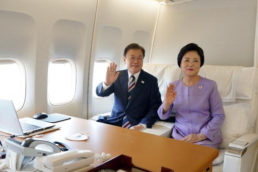 문 대통령과 김정숙 여사는 지난 19일 미국으로 출발하기 전 전용기에 탑승해 영상 메시지를 미리 녹화했다.