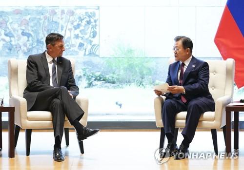 문 대통령은 또 "슬로베니아의 올해 하반기 유럽연합(EU) 의장국 수임을 축하하고 슬로베니아의 주한대사관 개설을 환영한다"며 "오늘 회담이 양국 협력의 출발점이 되기를 바란다"고 말했다.