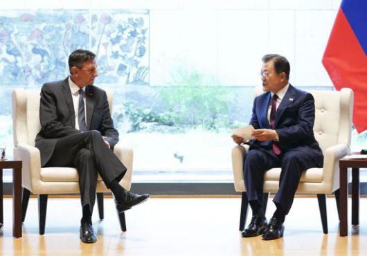 파호르 대통령은 "한국은 동북아 역내에서 중요한 파트너로, 슬로베니아와 공통점이 많다"며 "슬로베니아는 한국의 좋은 친구가 되기를 기대한다"고 답했다.