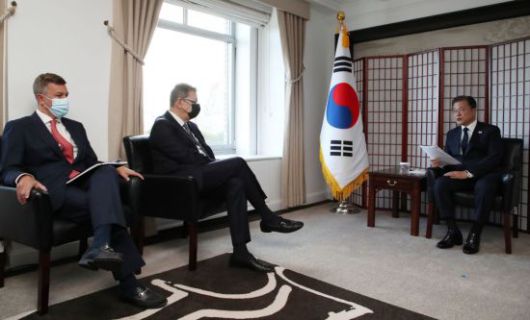[아시아경제 이지은 기자] 유엔 총회 참석을 위해 미국을 방문 중인 문재인 대통령은 21일(현지시간) 앨버트 불라 화이자 회장을 접견하고, 기존 3000만회분 외 내년도 추가 백신 확보 등 한국과 화이자의 다각적 백신 협력 방안에 대해 논의했다.