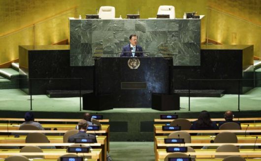 문 대통령은 이날 오후 미국 뉴욕 유엔본부에서 열린 '제76차 유엔총회'에서 기조연설을 통해 "한국은 지난해 '2050 탄소중립'을 선언했고, '탄소중립기본법'을 제정해 그 비전과 이행체계를 법으로 규정했다. 다음 달에는 '2050 탄소중립 시나리오'를 확정하고, 11월 COP26을 계기로 '2030 국가 온실가스 감축 목표'를 상향해 발표할 것"이라며 이같이 말했다.