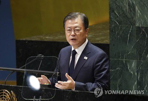 (뉴욕=연합뉴스) 김범현 임형섭 기자 = 문재인 대통령이 21일(현지시간) 임기 마지막 유엔총회 무대에서 종전선언 제안을 다시 꺼내 들었다.