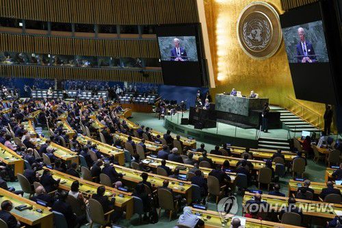 취임후 첫 유엔총회 연설하는 조 바이든 미국 대통령 |