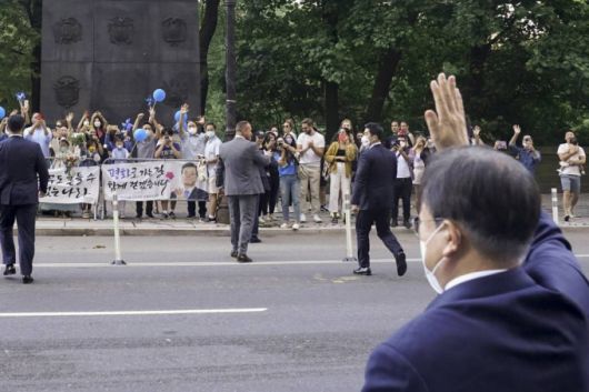 앞서 문 대통령은 지난 19일 뉴욕에 도착한 당일에도 숙소 앞에 모인 수십명의 교민들로부터 환영 인사를 받고 손을 흔들어 화답하는 모습이 공개된 바 있다.