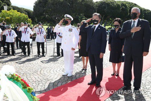훈장 추서식에 앞서 문 대통령은 진주만 공격 전사자를 비롯해 2차 세계대전, 한국전쟁, 베트남전쟁 등의 전사자 3만6천여명이 영면해 있는 펀치볼 국립묘지를 찾아 헌화했다.