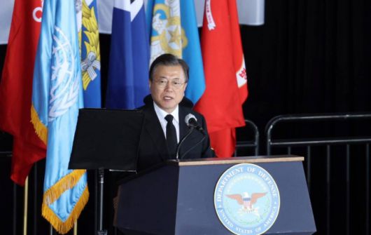 문 대통령은 "참전용사들의 피와 헌신으로 맺어진 한미동맹은 자유와 평화, 민주주의와 인권, 법치 등 정치·경제·사회·문화 전반의 가치를 공유하는 포괄적 동맹으로 발전했다"며 "한반도의 완전한 비핵화와 항구적 평화 구축을 위한 한미 양국의 노력 역시 흔들림 없이 계속될 것"이라고 강조했다.