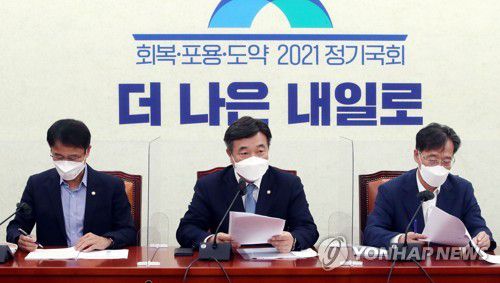 윤호중 원내대표는 이날 정책조정회의에서 "대통령이 유엔을 무대로 백신외교, 평화외교, 미래외교를 펼치고 있는데 야당은 임기 말 운운하며 이를 방해했다"고 지적했다.