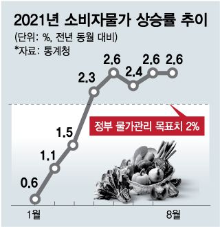 그렇지 못할 경우 올해 물가상승률이 정부의 물가 관리 목표치 2.0%을 넘어설 가능성이 있다. 최근 OECD(경제협력개발기구)는 올해 우리나라의 소비자물가 상승률 전망치를 2.2%로 종전보다 0.4%포인트 올려잡았다.