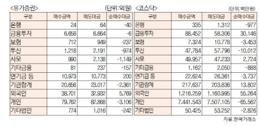 [표]유가증권 코스닥 투자주체별 매매동향(9월 23일-최종치)