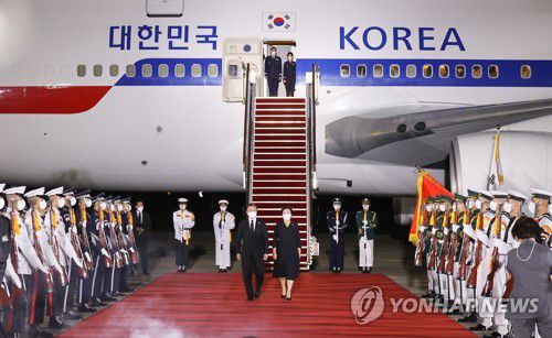 귀국하는 문 대통령 내외 |