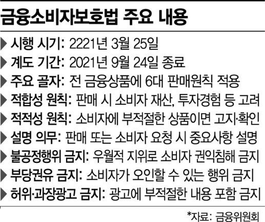 [아시아경제 이광호 기자]지난 3월부터 한시적으로 적용됐던 금융소비자보호법과 특정금융정보법의 6개월 유예기간이 24일 종료된다. 금융당국은 예외 없는 법 적용을 예고하고 있어 금융사는 물론 소비자들의 피해가 우려된다.
