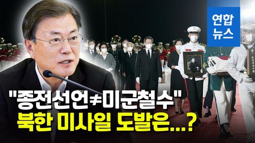 문 대통령은 "종전선언은 '이제 전쟁을 끝내고 평화협상에 들어가자'는 일종의 정치적 선언으로, 법적 지위는 달라지는 것이 없다"며 "종전선언과 주한미군 철수, 한미동맹과는 아무 관계 없다"고 강조했는데요.