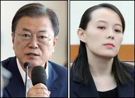 문재인 대통령과 북한 김정은 국무위원장의 동생인 김여정 노동당 부부장(사진=연합뉴스). |