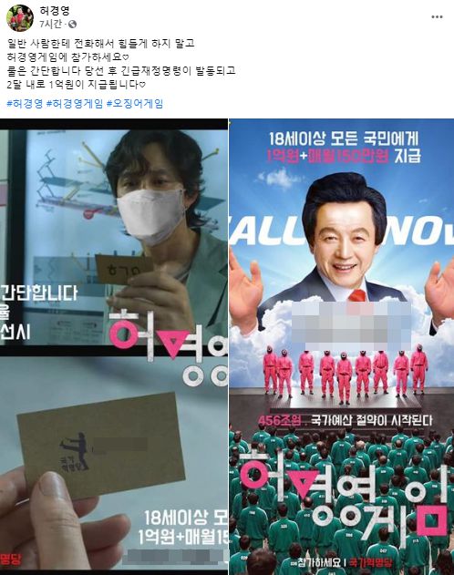 앞서 '오징어게임'을 패러디해 대선공약을 알린 허 명예대표는 "허경영 득표율 50% 이상 당선 시 18세 이상 모든 국민에게 1억원+매월 150만원 지급"이라는 공약을 내건 바 있다.