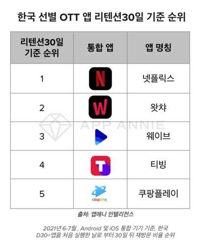 OTT 경쟁이 더욱 치열해지고 있는 시점에서, 리텐션 상위에 오른 성과는 그만큼 앱 사용자 경험이 좋다는 것을 반증한다는 것이 앱애니의 분석이다.