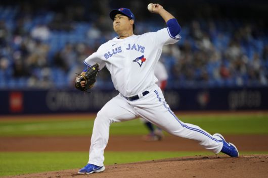 토론토 블루제이스 선발 투수 류현진이 29일(한국 시간) 홈 로저스센터에서 뉴욕 양키스를 상대로 투구하고 있다. 토론토(캐나다)|AP연합뉴스 |
