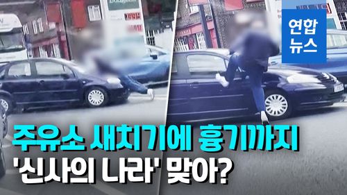 런던의 주유소에서는 짜증이 '폭발한' 남성들의 모습이 포착됐습니다.