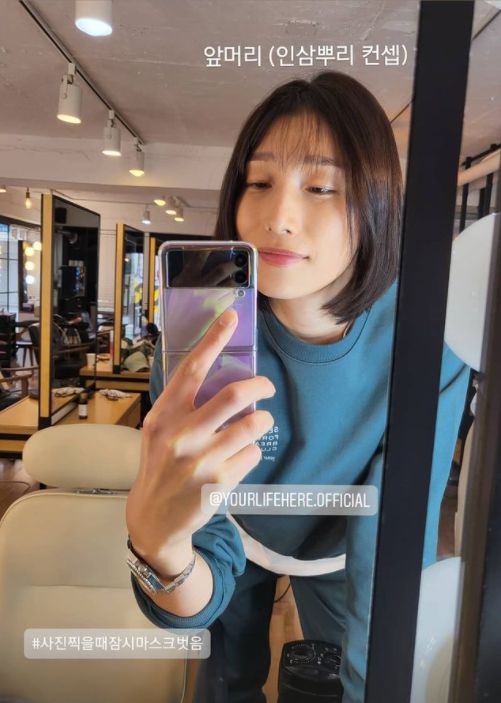 28일 김연경은 자신의 인스타그램 스토리에 “앞머리(인삼 뿌리 컨셉)”이라는 글과 함께 한장의 사진을 게재했다.