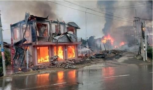 미얀마군의 포격으로 불타는 딴틀랑의 가옥들(자료사진) |