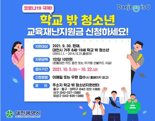 대전 '학교 밖 청소년' 교육재난지원금 10만원 지원 |