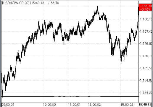 1일 서울외국환중개에 따르면 환율은 전 거래일 종가(1184.00원)보다 4.70원 오른 1188.70원에 마감했다. 이날 환율은 전일 대비 1.00원 오른 1185.00원에 시작해 장초반 1180원대 중반에서 보합권 흐름을 보이다가 장중 한 때 1183.50원까지 떨어지면서 하락 전환하는 듯 했으나 오후 들어 다시 상승 반전하면서 상승 폭을 키웠다. 장중 고점 기준으로 1188.70원까지 오르면서 전일에 이어 연고점을 다시 한 번 터치하면서 장을 마쳤다. 장중 기준으로는 작년 9월 11일(1189.30원), 종가 기준으로는 작년 9월 9일(1189.10원) 이후 최고 수준이다.