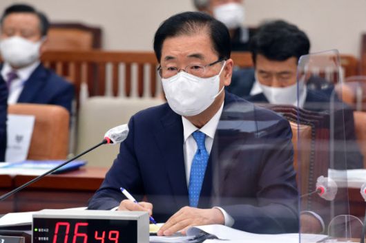 정의용 외교부 장관이 1일 오후 국회에서 열린 외교통일위원회의 외교부·한국국제협력단·한국국제교류재단·재외동포재단 등에 대한 국정감사에서 답변하고 있다(사진=국회사진기자단). |