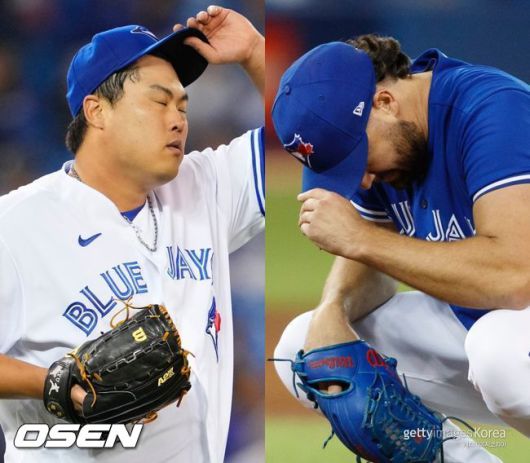 [사진] 토론토 블루제이스 류현진(왼쪽), 로비 레이. ⓒGettyimages(무단전재 및 재배포 금지) |