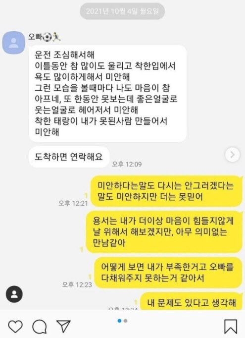 이어 그는 “남자친구 관리 못 한 제 탓도 있다. A씨는 인스타 서로 팔로우도 꺼려하던 사람이다. 여자친구 있는 거 알까봐”라고 전했다.