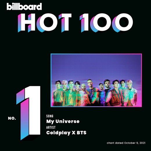 방탄소년단과 콜드플레이는 협업곡 ‘마이 유니버스’(My Universe)로 4일(현지시간) 빌보드 메인차트 ‘핫 100’ 1위를 기록했다.
