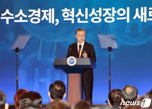 문재인 대통령이 17일 울산광역시청에서 열린 수소경제 전략보고회 '수소경제와 미래에너지, 울산에서 시작됩니다'에 참석해 인사말을 하고 있다.(울산시 제공)2019.1.17/뉴스1 |