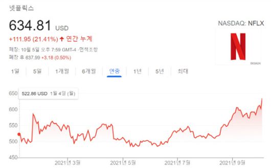 넷플릭스 시리즈물 '오징어 게임' 인기가 전 세계를 휩쓴 가운데 미국 뉴욕 증시에서 넷플릭스 주가가 사상 최고치를 기록했다. 한국 '오징어 게임'을 비롯해 스페인 '종이의 집' 등 주력 콘텐츠가 최근 높은 호응을 얻으면서 투자자들이 주식 매수 저울질에 나서는 모양새다.