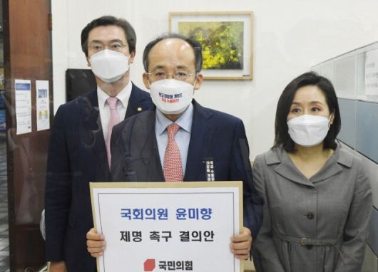 [이데일리 이세현 기자] 국민의힘이 위안부 피해자 후원금 횡령 혐의를 받는 윤미향 무소속 의원의 제명을 촉구하는 결의안을 제출했다.